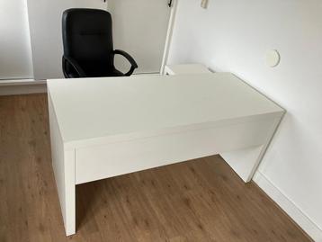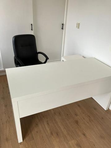Wit bureau met uittrekbaar blad van IKEA. Model Malm. Zwarte verrijdbare bureaustoel.