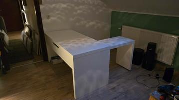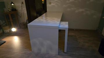 Mooie witte Ikea Malm bureau met handig uittrekbaar blad. Ideaal voor thuiswerken of studeren. Het bureau is in goede staat en biedt voldoende ruimte voor een computer, boeken en andere benodigdheden. Afmetingen: zie laatste foto. Zelf ophalen, maar het bureau is al voor een groot gedeelte uit elkaar gehaald.